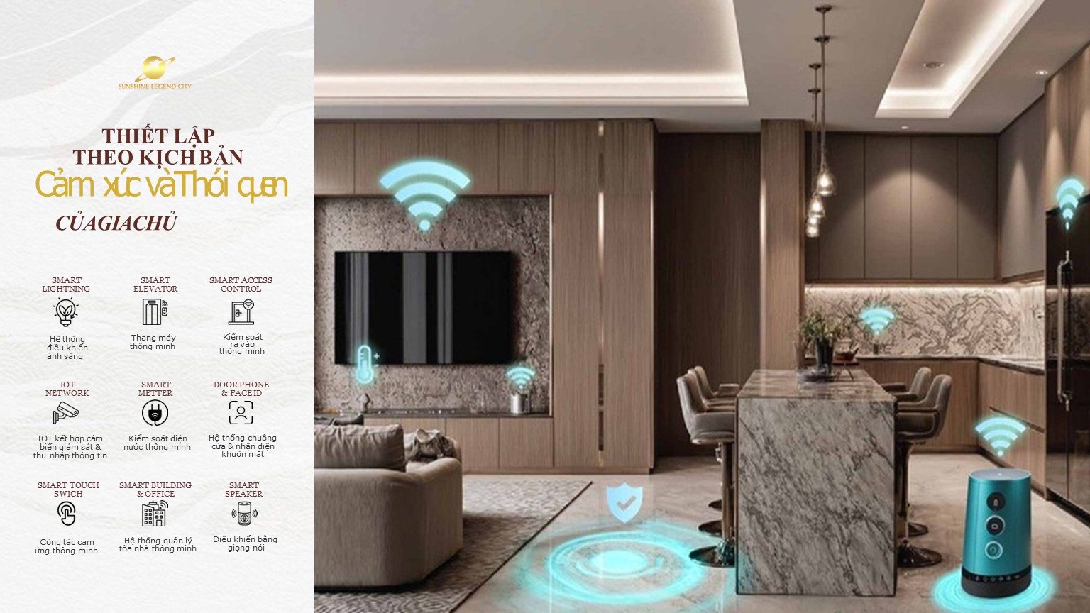 Lấy cảm hứng từ triết lý Biophilic – đề cao sự giao hòa giữa con người và thiên nhiên, các căn hộ tại Sunshine Legend City được thiết kế để đón trọn ánh sáng và khí trời, mang lại cảm giác thư thái, cân bằng và đầy sinh khí mỗi ngày. Toàn bộ không gian sống được bao phủ bởi hệ kính Low-E từ sàn đến trần, giúp tối ưu ánh sáng tự nhiên, cách nhiệt hiệu quả và tiết kiệm năng lượng – một tiêu chuẩn sống xanh đúng nghĩa. Kết hợp cùng sàn gỗ xương cá cao cấp nhập khẩu, từng bước chân trong căn hộ đều mang hơi thở của sự sang trọng và tinh tế mang phong cách châu Âu.